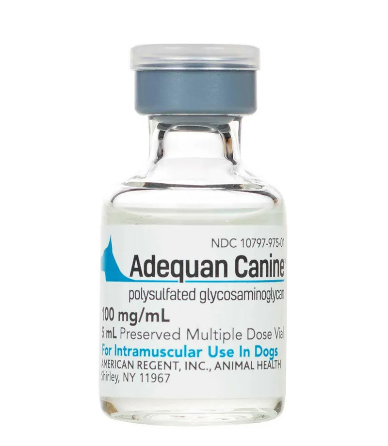 Adequan® Canine (polysulfated glycosaminoglycan) is a prescription injectable solution formulated to control signs associated with non-infectious degenerative and/or traumatic arthritis in canine synovial joints. Each milliliter contains 100 mg of polysulfated glycosaminoglycan. The recommended dosage is 2 mg per pound (4.4 mg/kg) of body weight, administered intramuscularly twice weekly for up to four weeks, totaling a maximum of eight injections. This regimen aims to reduce joint pain and inflammation, thereby enhancing mobility and overall well-being in affected dogs. Adequan® Canine should not be used in dogs with known hypersensitivity to polysulfated glycosaminoglycan or those with known or suspected bleeding disorders. Regular veterinary consultations are essential to monitor the dog's response to treatment and adjust the therapeutic approach as needed.