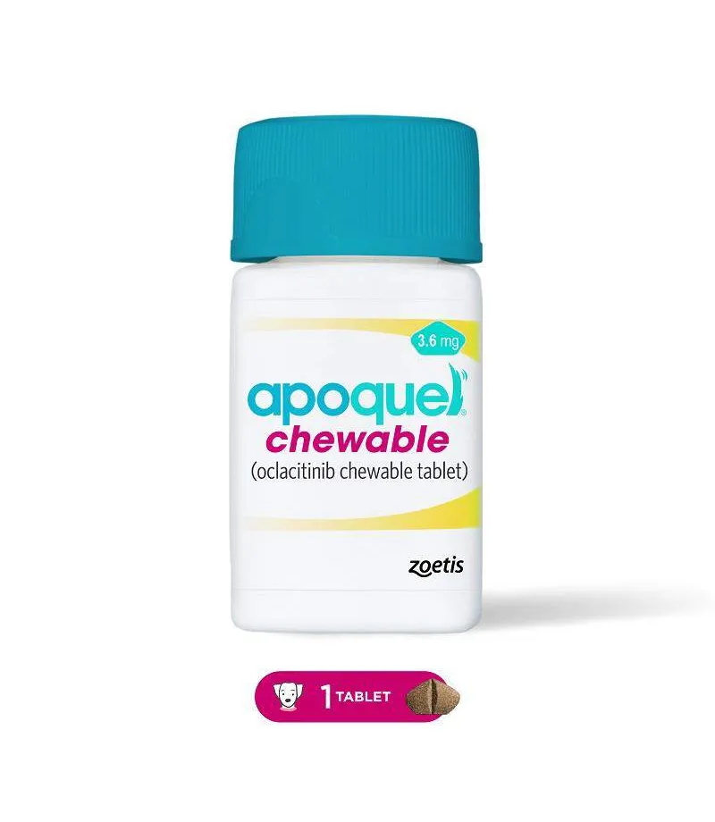 $16.00 $21.00Apoquel Chewable Tablets are an effective oral medication for relieving itching and inflammation caused by allergies in dogs. Containing oclacitinib, these chewable tablets quickly alleviate symptoms of allergic dermatitis, atopic dermatitis, and pruritus, providing fast and long-lasting relief with fewer side effects than steroids.