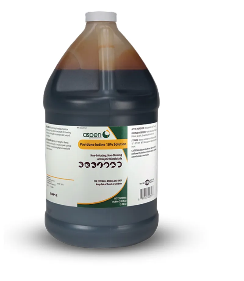 $56.99 $58.00Aspen Povidone Iodine Solution 10% (1 Gallon) is a potent, water-based topical antiseptic formulated for veterinary use. With 1.0% titratable iodine, it effectively combats a broad spectrum of pathogens, including bacteria, fungi, viruses, and yeasts. Its non-irritating, non-staining formula ensures safe application on animals' skin.