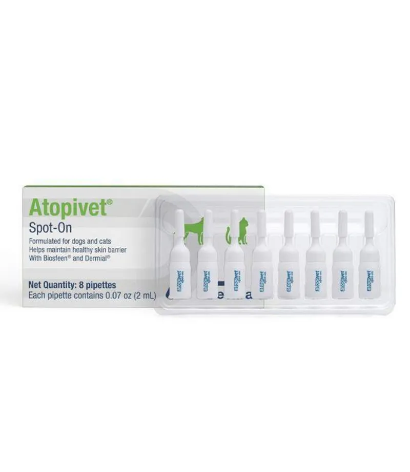 $16.00 $22.00Atopivet Spot-On for Dogs and Cats (8 pipettes) is a targeted topical treatment designed to soothe and manage skin irritation caused by allergies, inflammation, and dryness. It helps restore the skin barrier and provides lasting relief from itching and discomfort.