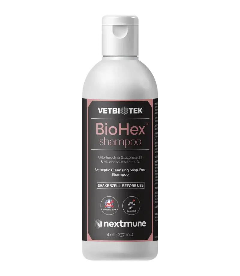 $23.99 $35.00BioHex Hexazole Shampoo is a medicated shampoo designed to treat and manage bacterial and fungal skin infections in pets. Infused with 3% chlorhexidine and 2% miconazole, it helps relieve itching, irritation, and inflammation caused by conditions like dermatitis and hotspots. This soothing shampoo promotes skin healing, leaving your pet’s coat clean and healthy.