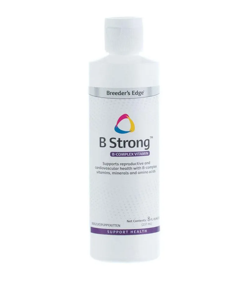 Breeder's Edge B Strong Liquid is a high-quality vitamin B-complex supplement formulated to support the health and well-being of dogs and cats. It provides essential B vitamins that play a crucial role in energy production, red blood cell formation, and nervous system function. This supplement is particularly beneficial for breeding animals, pregnant and nursing pets, or those recovering from illness or surgery. The liquid formula ensures rapid absorption, making it easy to mix with food or administer directly. Regular use helps maintain healthy metabolism, muscle strength, and overall vitality in pets of all ages. Recommended by veterinarians, Breeder’s Edge B Strong Liquid is a reliable choice for pet owners looking to boost their pet’s daily nutrition and well-being.