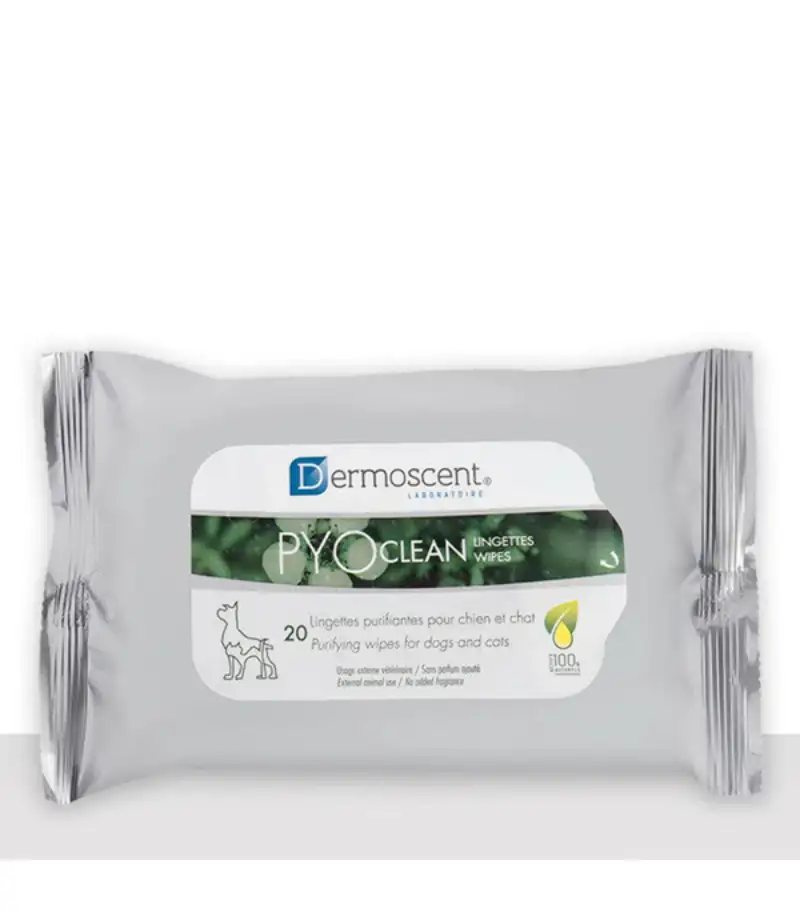 Dermoscent Pyoclean Wipes for Dogs and Cats are specially designed to clean and care for your pet’s skin, especially for pets with sensitive or irritated skin. These pre-moistened wipes effectively remove dirt, oils, and debris, while their advanced formula helps to prevent bacterial and yeast infections. Ideal for managing hotspots, dermatitis, and other skin conditions, these wipes soothe itching, reduce inflammation, and support the healing process. Made with natural ingredients, Dermoscent Pyoclean Wipes are safe for frequent use and are gentle on your pet’s skin. Perfect for quick clean-ups, they are easy to use and provide immediate relief from discomfort. The 20-count pack ensures you have enough wipes for regular use, promoting healthy skin and coat maintenance. Ideal for both dogs and cats, these wipes make skin care simple and effective.