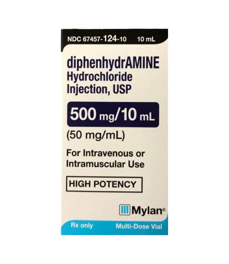 $11.00 $25.00Diphenhydramine Injection 50 mg/ml, 10 ml is an injectable antihistamine used to treat severe allergic reactions, anaphylaxis, motion sickness, nausea, and to induce sedation. It blocks histamine receptors to reduce allergy symptoms and provide relief from related conditions.