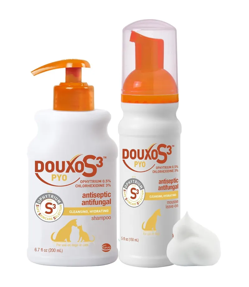 $45.99 $46.50The Douxo S3 PYO Antiseptic Antifungal Bundle for Skin Infections provides a complete treatment for pets suffering from fungal and bacterial infections. This bundle includes a shampoo, mousse, and wipes, all formulated to eliminate pathogens, soothe irritated skin, and restore balance. Ideal for pets with skin infections, it helps promote healing and prevent recurrence.