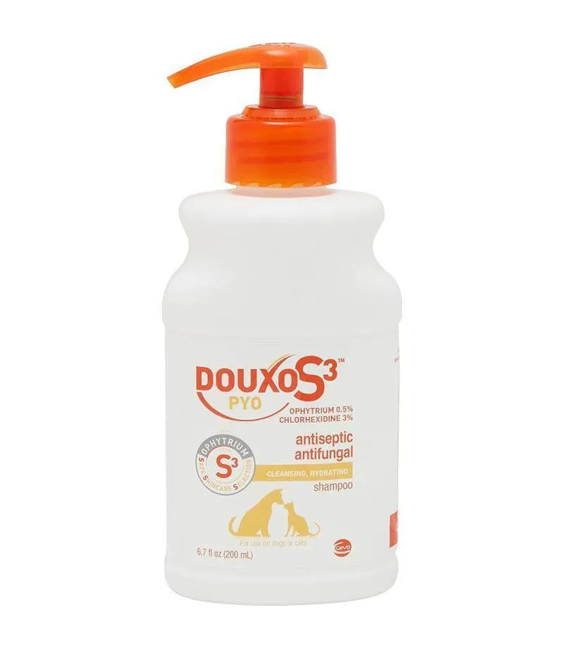 $11.00 $31.00Douxo S3 PYO Antiseptic Antifungal Shampoo is a gentle yet effective shampoo for dogs and cats, formulated to treat and manage bacterial and fungal skin infections. It helps relieve itching, reduce inflammation, and promote healthier skin and coat.