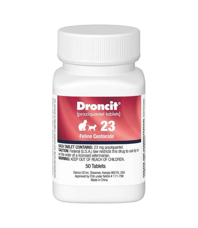 Droncit is safe for use in cats and kittens, and the tablet can be administered orally. It is often used to treat tapeworms caused by flea infestations, as cats can ingest tapeworm eggs while grooming or licking flea larvae from their fur. By eliminating tapeworms, Droncit helps to prevent potential health issues, such as digestive disturbances, weight loss, or malnutrition, that may arise from a worm infestation.