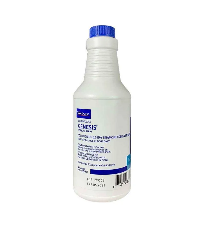 Genesis Spray is an essential grooming aid for pet owners looking to enhance their furry friends' skin and coat health. This 16 oz spray combines nourishing ingredients to provide hydration and relief from common skin issues.