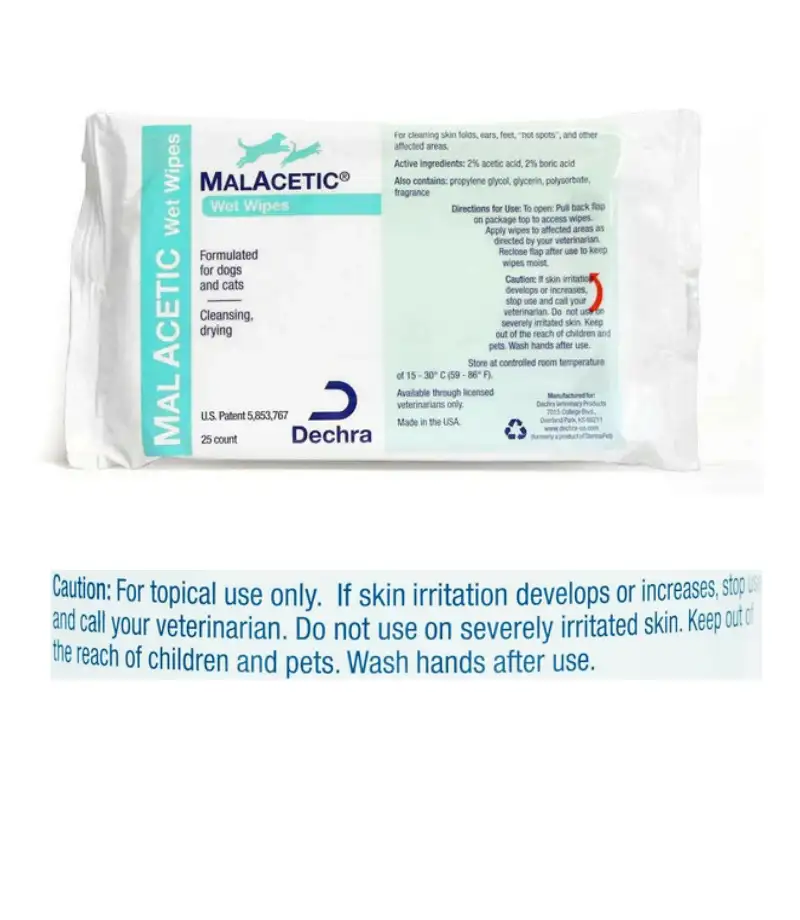$20.96 $21.96MalAcetic Wet Wipes are specially formulated to clean and deodorize your pet’s skin and coat while helping to control bacterial and fungal infections. Infused with acetic acid and salicylic acid, these wipes provide a soothing, gentle solution for pets suffering from skin irritations, hot spots, and other conditions.