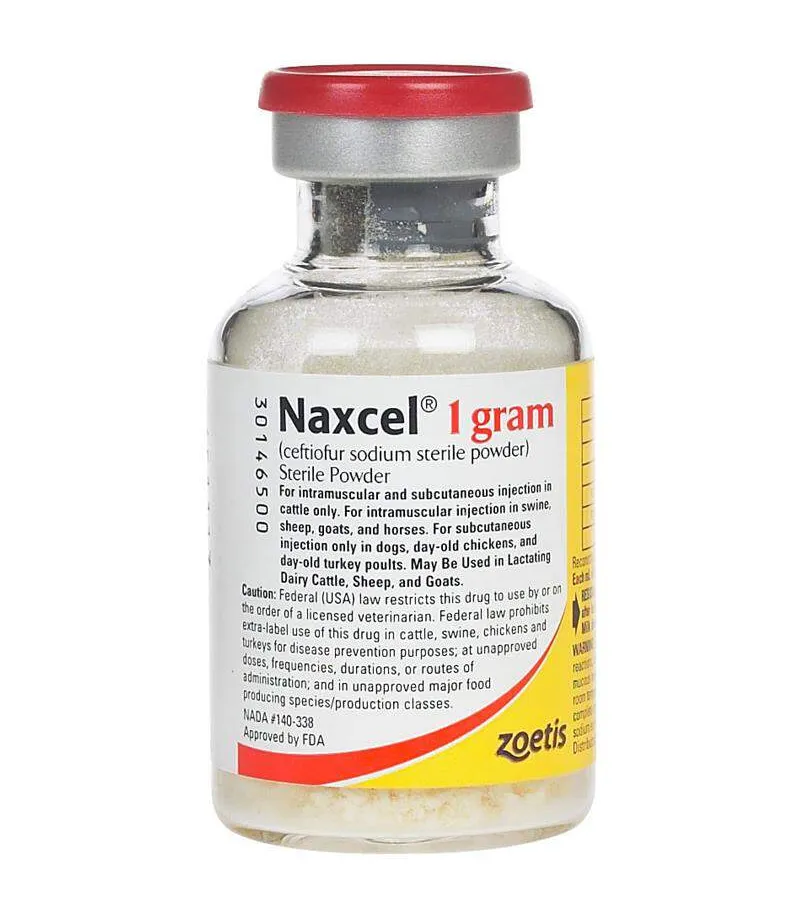$12.00 $27.00NAXCEL is a potent injectable antibiotic solution containing Ceftiofur, used for treating a variety of bacterial infections in livestock, including respiratory, urinary, and soft tissue infections.
