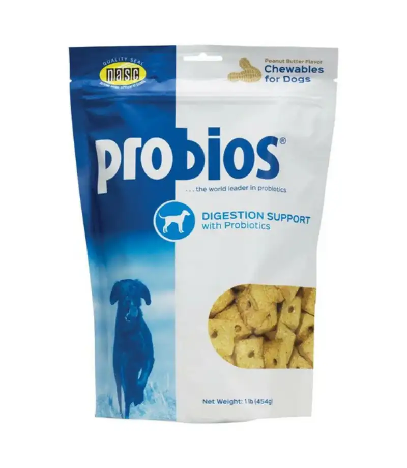 $10.00 $12.00Probios Digestion Support Dog Treats (16 oz) are specially formulated to support your dog’s digestive health. Made with probiotics and prebiotics, these treats help balance your dog’s gut flora, improve digestion, and promote overall well-being, all while being a tasty snack your dog will love.
