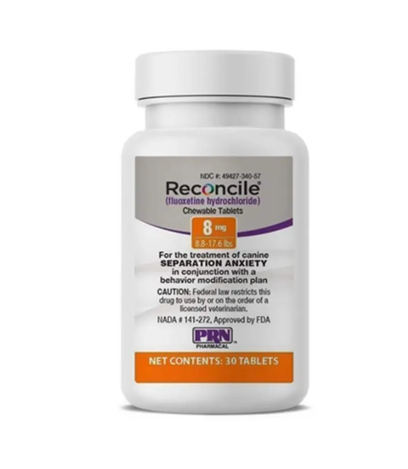 $16.00 $27.00Reconcile Flavored Chewable Tablets for Dogs are an FDA-approved medication used to treat separation anxiety in dogs. Containing fluoxetine, an SSRI (selective serotonin reuptake inhibitor), these chewable tablets help manage anxiety, reduce stress-related behaviors, and improve overall emotional well-being in dogs.