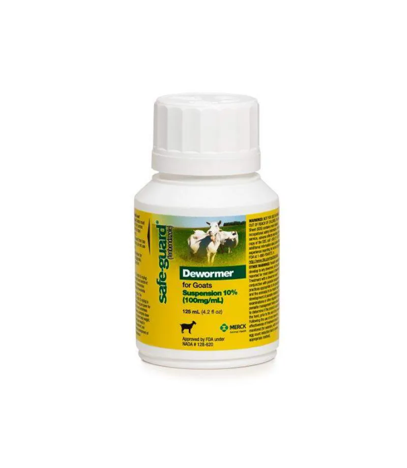 Safe-Guard Goat Dewormer (125 ml) is a broad-spectrum oral anthelmintic containing Fenbendazole, specifically formulated for goats. It is highly effective against a variety of gastrointestinal parasites, including stomach worms, intestinal worms, and lungworms, which can negatively impact goat health and productivity. The convenient oral suspension is easy to administer using a drench gun, ensuring accurate dosing for individual animals. Safe-Guard is a vital part of parasite control programs, helping to maintain healthy herds and improve overall performance. Always follow the product label or consult with a veterinarian for proper dosing and administration.