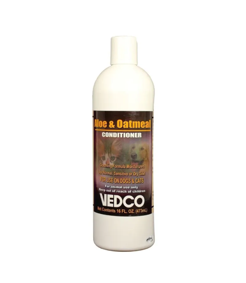 Vedco Aloe & Oatmeal Conditioner is specially formulated for dogs and cats to provide deep hydration and nourishment to the skin and coat. Infused with the soothing properties of aloe vera and oatmeal, it helps relieve dryness, itching, and irritation, making it ideal for pets with sensitive or allergy-prone skin. This conditioner works to restore moisture balance, leaving the coat soft, shiny, and easy to manage. Its non-greasy formula is gentle enough for regular use and enhances the effects of medicated or everyday shampoos. With a pleasant fragrance and soothing ingredients, Vedco Aloe & Oatmeal Conditioner ensures your pet feels refreshed and comfortable after every bath. Perfect for maintaining a healthy, lustrous coat while supporting skin health.