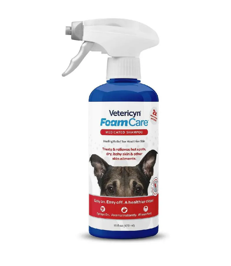 $18.99 $20.00Vetericyn FoamCare Medicated Shampoo is a veterinary-formulated, fast-acting cleanser that helps relieve itching, hot spots, and skin infections in dogs. Its easy-to-rinse foaming formula cleans deeply while soothing dry, irritated skin. Enriched with moisturizing and healing ingredients, it promotes a healthy coat and skin, making it perfect for dogs with allergies, fungal infections, and sensitive skin.