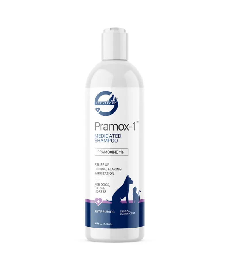 Stratford Pramox-1 Itch-Relief Medicated Shampoo is a fast-acting formula designed to relieve itching, irritation, and discomfort in dogs, cats, and horses. Infused with Pramoxine, it provides soothing relief for allergy-prone, dry, or sensitive skin while cleansing and moisturizing the coat. Perfect for pets with seasonal allergies or skin sensitivities, it leaves fur soft, healthy, and refreshed.